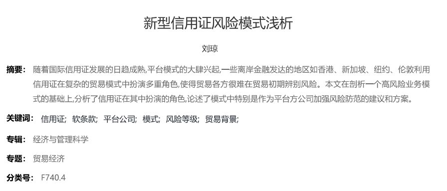 利用数据分析工具,深度研究异常案例特征,输出风控标准,在国家核心期刊发表文章“新型信用证风险模式浅析”。
